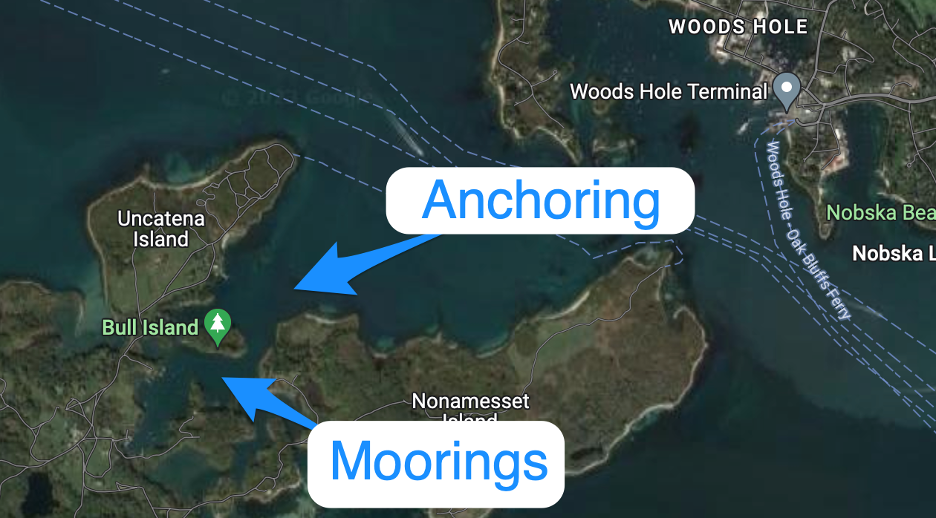 Hadley Harbor is a well protected and often forgotten spot just outside of Wood’s Hole MA, there is essentially nothing there and if your boat is small enough to go inside the inner harbor you may find one of several free moorings that you can pick up. The rule is that if the owner shows up you have to vacate but in all of the times we’ve gone that has never happened. If there are no moorings available there may be room to anchor inside but there is almost always plenty or room to anchor in the outer harbor which is still very well protected.
