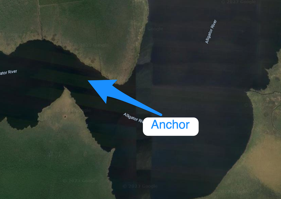Depending on the weather the base of the Alligator River just off “Deep Point” is an excellent spot to anchor that is well protected. There is nothing here and the darkness, lack of cell phone coverage, and isolation can offer some great views of the night sky. It is important to note that the Alligator River Bridge does not open if the winds pick up near 30MPH. We have used this anchorage in a wind storm with 40+MPH winds. You’ll want to be sure you are out of the channel since barges go through at night.
