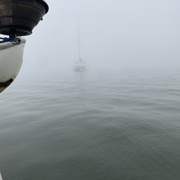 Another thing we like to do is to anchor north of the Bridge of Lions and sleep the first day of our arrival so we did just that. Of course this time we found ourselves entering the inlet in white out fog. Anchored in white out fog. And spent the day sitting in varying amounts of fog.
