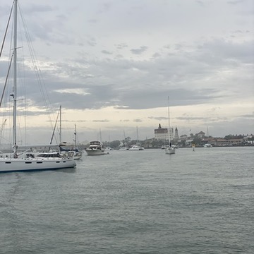 The sail to St. Augustine from Fernandina Beach can take as little as 8 hours, or as much as 12 depending on the weather. So on these days where the sun is only up for a few hours we like to leave at dusk and arrive a dawn and play a game of “how slow can you go”.