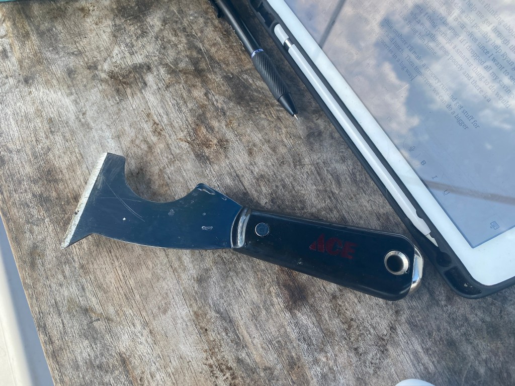 So today we dropped Ryan off at Capt. Jack’s Wharf and then immediately beached the dinghy and used a paint scraper to scrape all the growth off the bottom of the dinghy. The whole process only took about half and hour and the result we moved from going 1.5 knots to 2.3 knots. Now we’re a little better prepared for windy days.