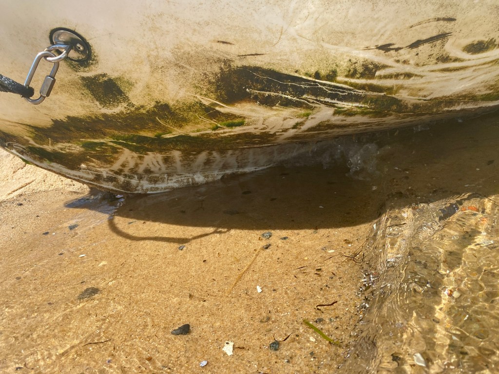 We have been in Provincetown for over a month, and before that we hadn’t done the best job of keeping the dinghy’s bottom clean. It’s easy to forget that the dinghy needs its bottom cleaned as well.