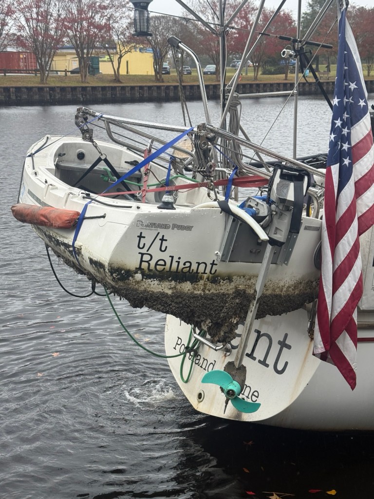 But now we are tied to a dock in Oriental for two months. We’re here for Liam to take the Captains License Course and Test. We’re going to have some canvas work done, replace the anemometer (wind sensor) on top of the mast, do some electrical work, call in a mechanic to look at our still leaking (but not as much) 3rd injector, and maybe call in for a fuel polish and fuel tank cleaning/inspection. Plus a whole lot of other projects.