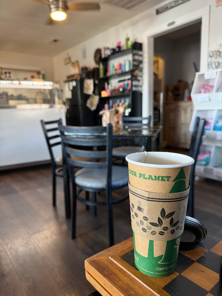 Unfortunately the marina is a bit “off the beaten path” so random trips to the café a few times a day isn’t very practical. We did discover though that it’s only a 1.5 NM run in the dinghy to get to the town dock which is right in the heart of “downtown” Oriental NC. I put downtown in quotes because there still isn’t much there but there is at least the most important place which is The Bean Cafe!